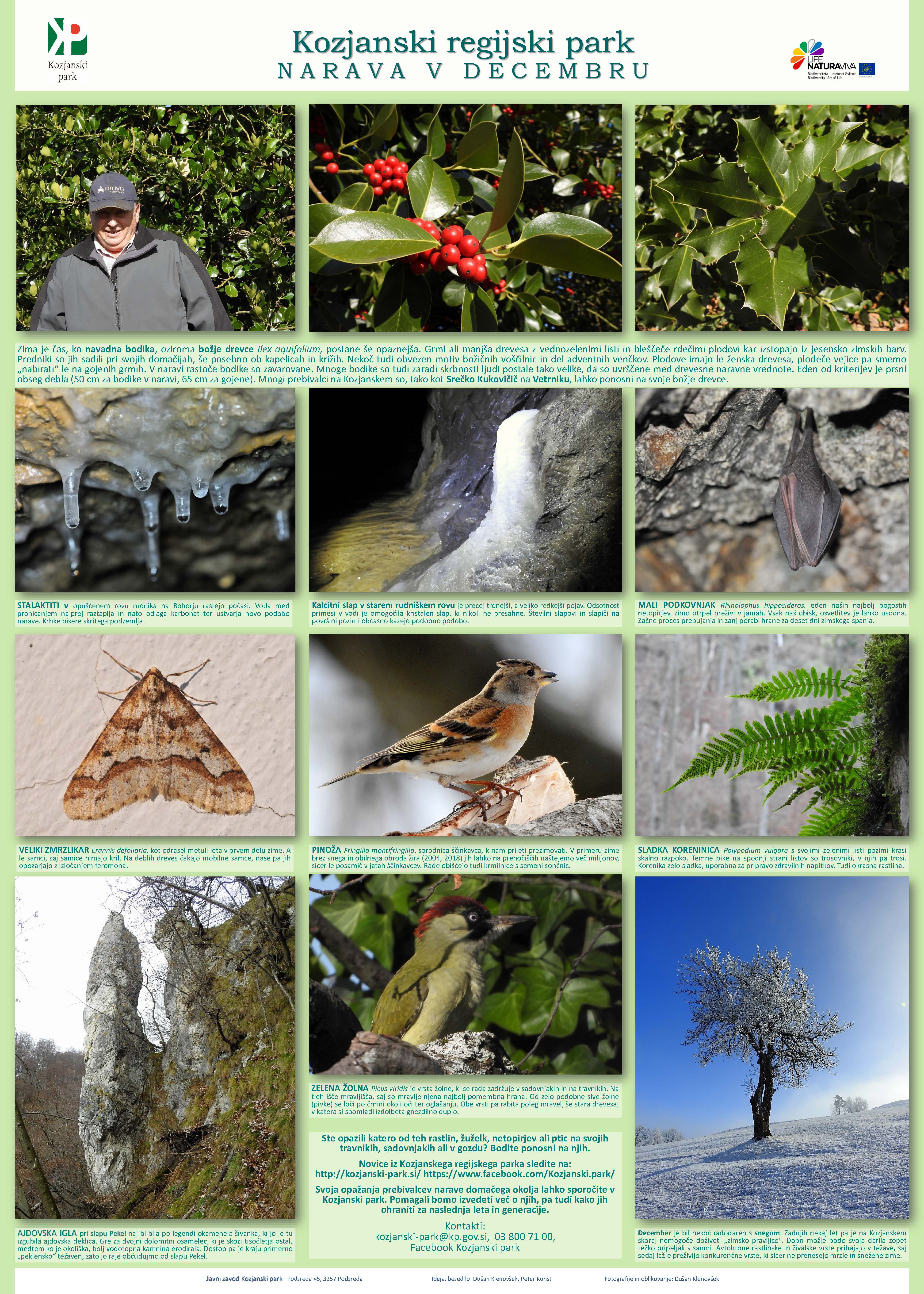 Tudi v zadnjem mesecu tega leta smo v Kozjanskem parku izdali plakat o naravi in biodiverziteti našega zavarovanega območja. Plakate lahko trenutno vidite na 35 lokacijah na biosfernem območju Kozjansko in Obsotelje, in sicer na številnih osnovnih šolah, zdravstvenih domovih, knjižnicah, občinah in upravnih enotah.